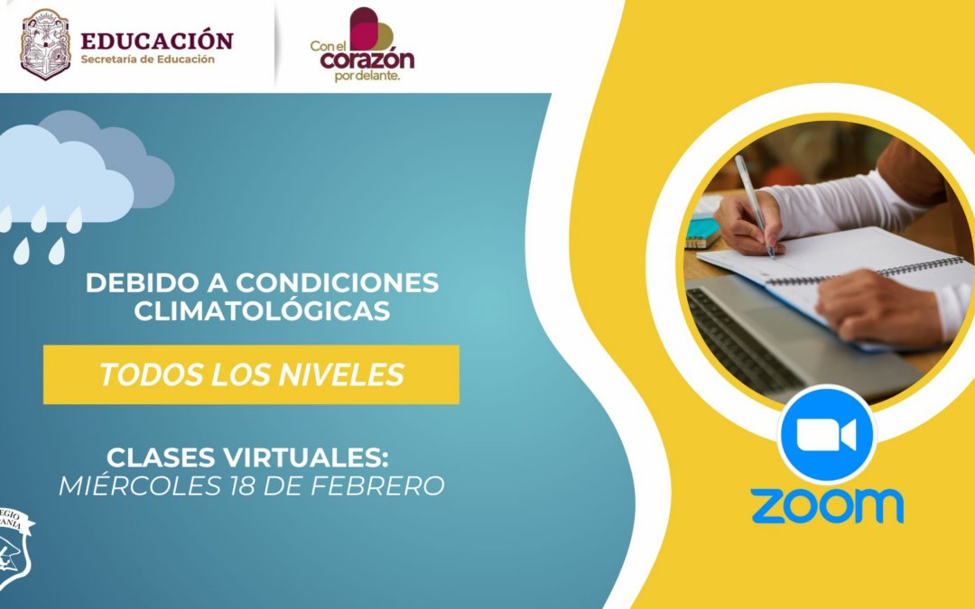 Por disposición oficial de la Secretaría de Educación en conjunto con Protección Civil, se han suspendido las clases presenciales para mañana miércoles 18 de febrero, debido a las condiciones climatológicas previstas.